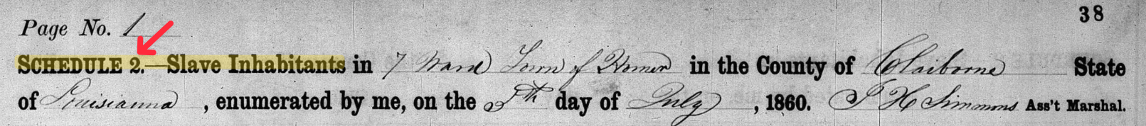 ➡️ Schedule 2 was specifically for documenting the enslaved population.