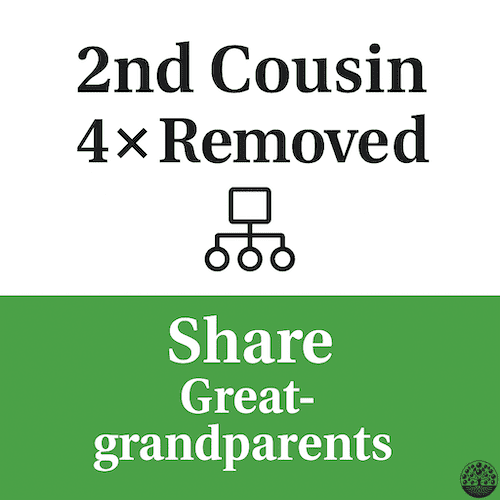 5th Cousin, 2× Removed | 4× Great-grandparents | 4× Great-grandchild | 6× Great-grandchild | |||