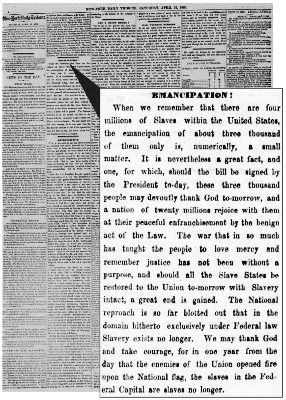 The District of Columbia Compensated Emancipation Act of 1862 abolished slavery in the nation’s capital, compensating loyal slaveholders while recording the names of those freed