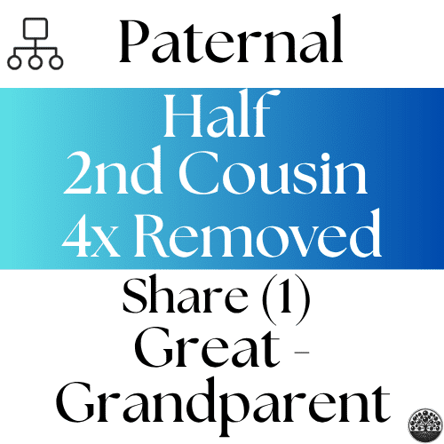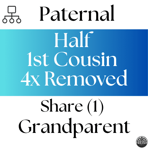 | 1st Cousin, 4× Removed | Grandparents | Grandchild | 4× Great-grandchild | |||
