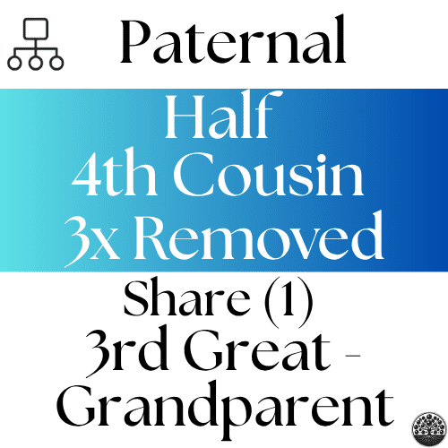 | 4th Cousin, 1× Removed | 3× Great-grandparents | 3× Great-grandchild | 4× Great-grandchild | |||
