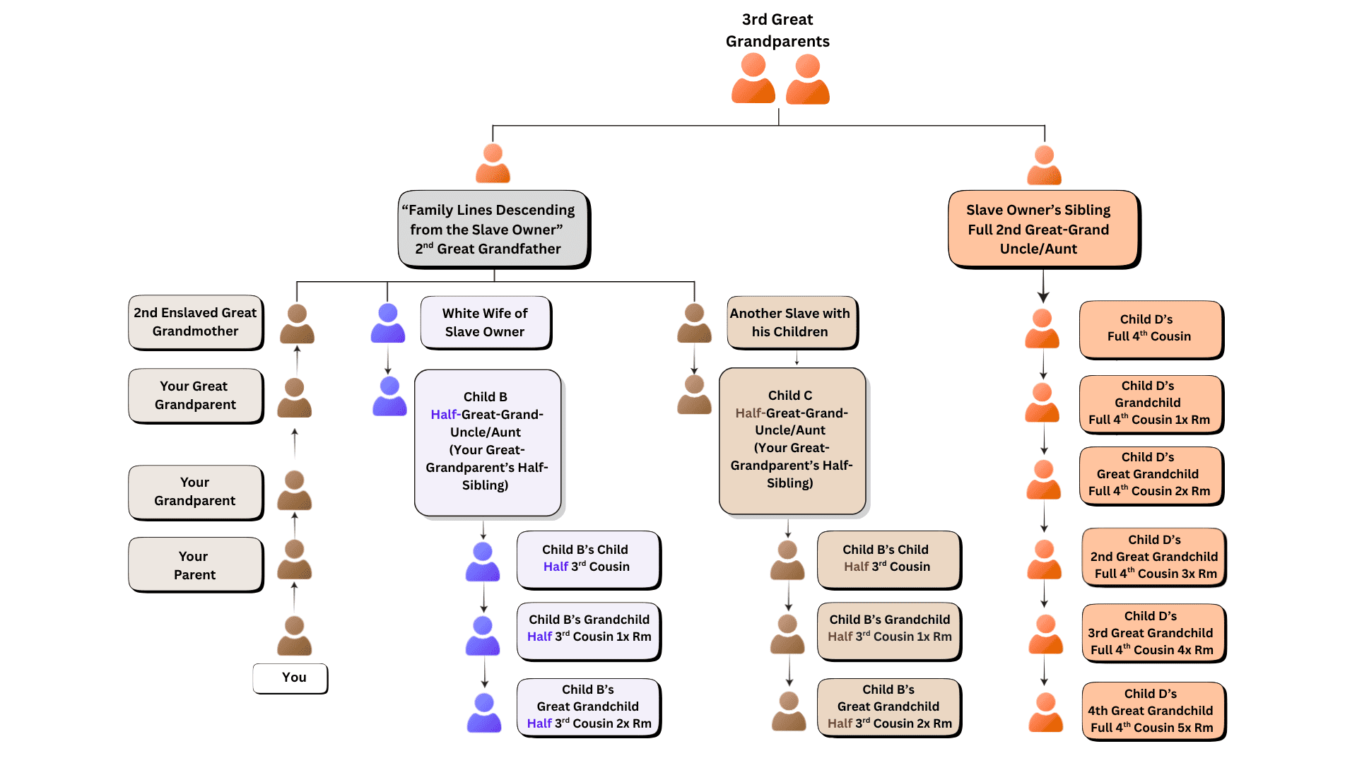 - ➡️ 3rd cousins share 2nd great-grandparents (Enslave 2nd Great Grandmother and Slave Owner)